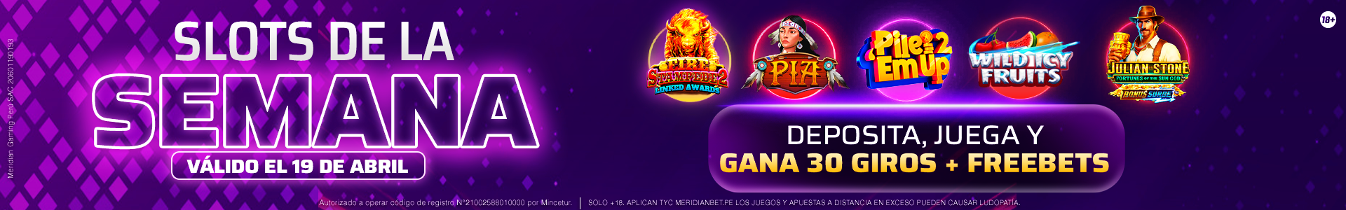 - La apuesta mínima por giro (spin) es de S/ 0,20.